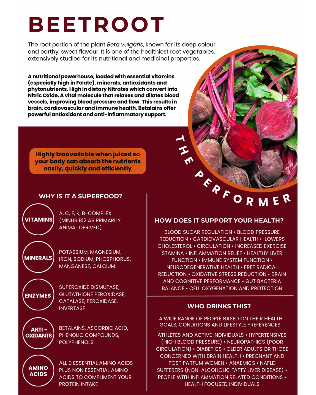 A powerful blend of 49.9% organic broccoli sprout juice and 49.9% beetroot juice, with just 0.2% plant-based lactic acid — and that's it!