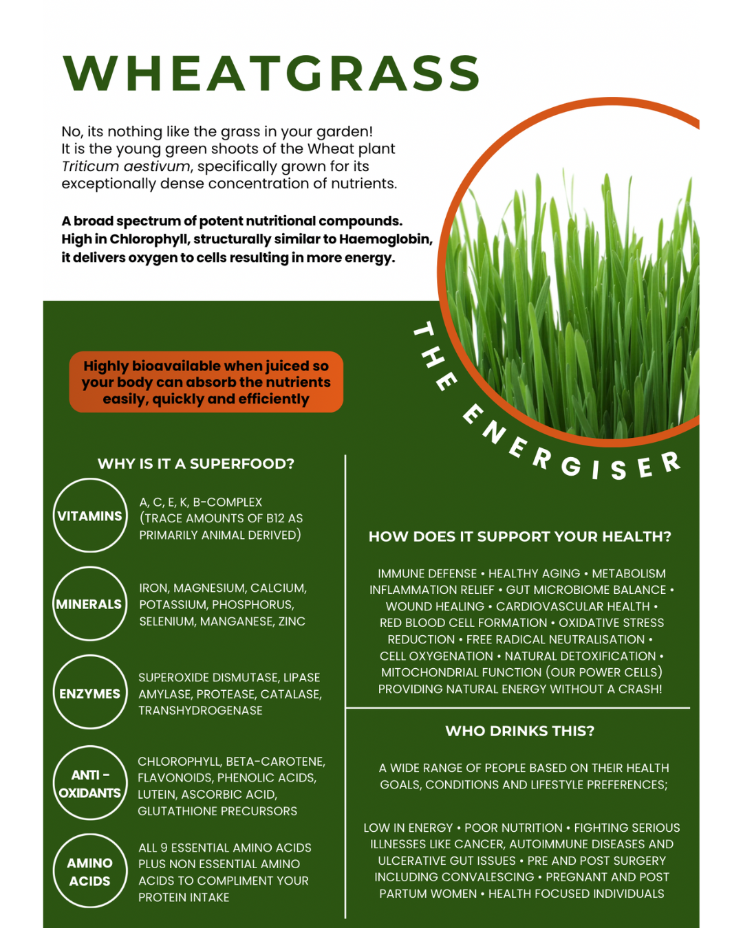 Pure potent superfood shots….never heated : never frozen: never diluted!”