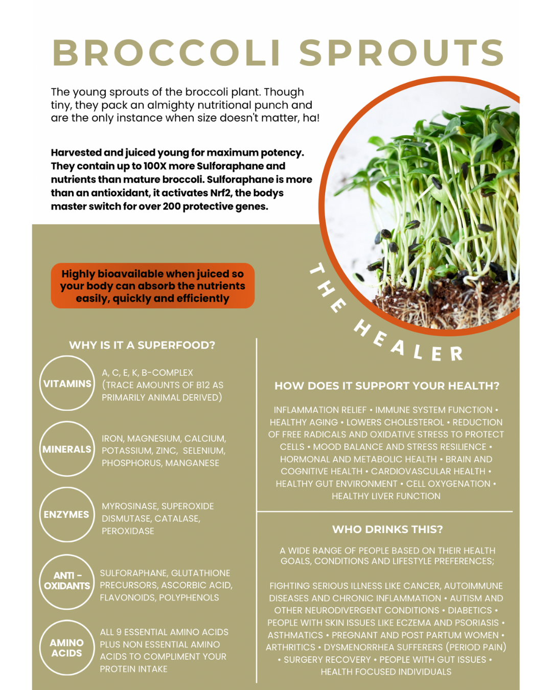 Pure potent superfood shots….never heated : never frozen: never diluted!”